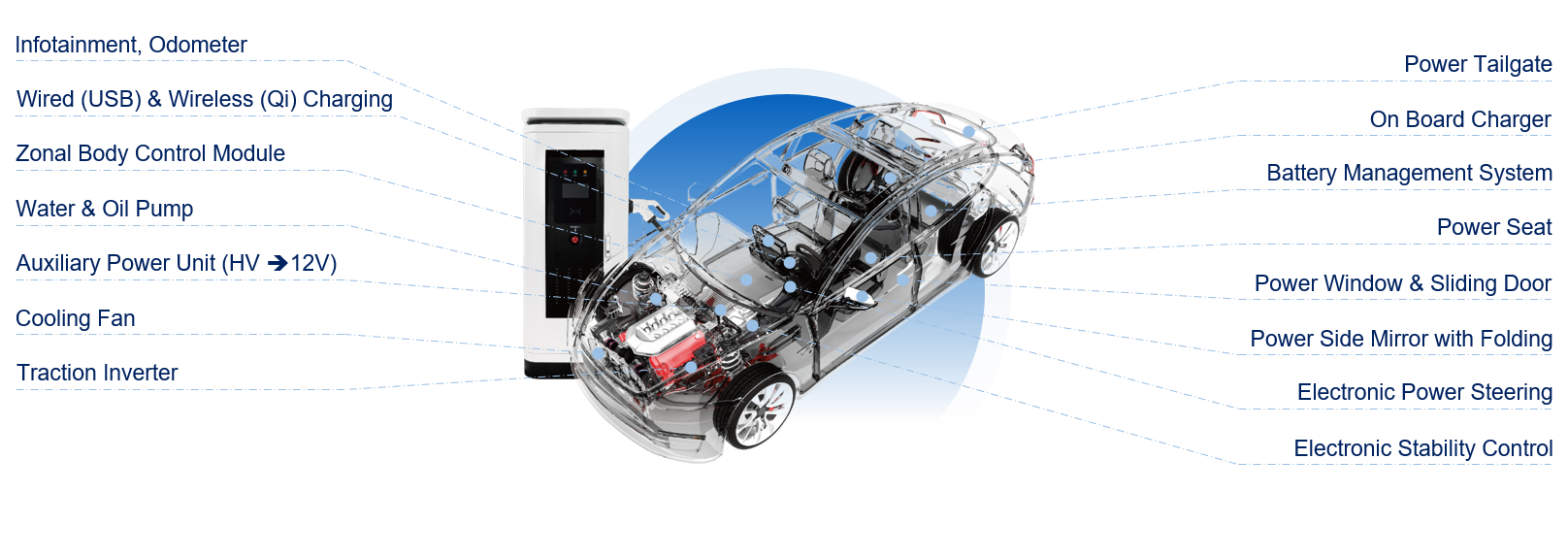 汽車應(yīng)用從有刷電機到無刷電機,車用照明大量使用 LED 照明的轉(zhuǎn)變,汽車也越來越電動化,智能化,催生極大功率器件的需求。捷捷微電 順應(yīng)這一趨勢,車規(guī)級產(chǎn)品持續(xù)聚焦在汽車三電(電池,電源及電機),車身照明及智能出行 (ADAS, Telematics and Infotainment systems, etc.) 等應(yīng)用。 車規(guī)級 MOSFET 產(chǎn)品布局先進封裝的基礎(chǔ)上,盡量降低導(dǎo)通內(nèi)阻的同時,能額外降低器件結(jié)電容效應(yīng),減少 Qg,進而提供較高的工作效率,減少發(fā)熱,提供兼容市面主流應(yīng)用先進封裝架構(gòu)的高可靠性車規(guī)級產(chǎn)品。 車規(guī)級 TVS 采用獨特的 CLIP 結(jié)構(gòu),相對于傳統(tǒng)的 A+B 結(jié)構(gòu),可以避免虛焊,減少芯片應(yīng)力,提供高可靠性。針對電源及電機開關(guān)當(dāng)中可能出現(xiàn)的瞬態(tài)浪涌及各種干擾,捷捷微電 車規(guī)級二極管 (TVS、ESD、穩(wěn)壓/續(xù)流二極管) 可以提供良好的高可靠性保護。在性能上實現(xiàn)卓越的鉗位能力、漏電流小、快速的響應(yīng)速度,滿足 AEC-Q101 Rev-E 等級規(guī)范。